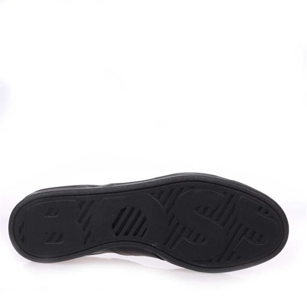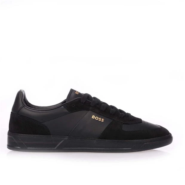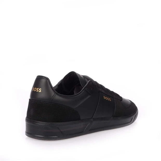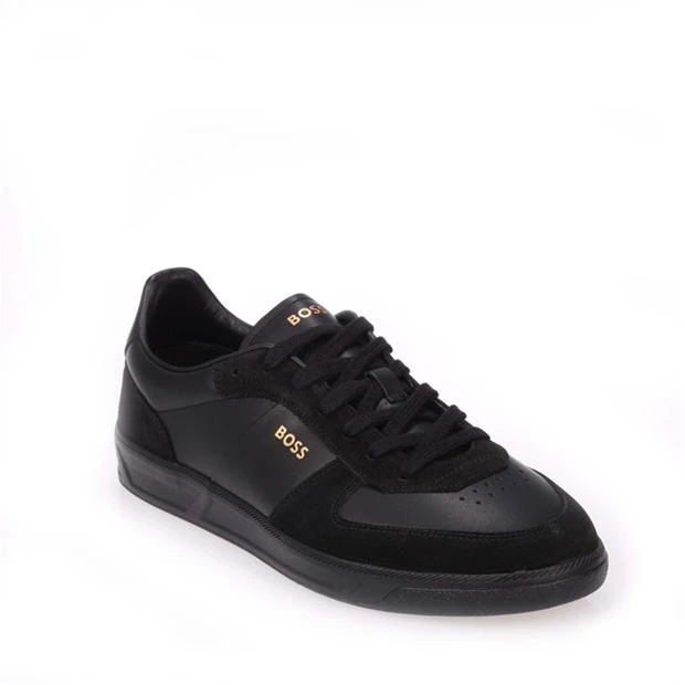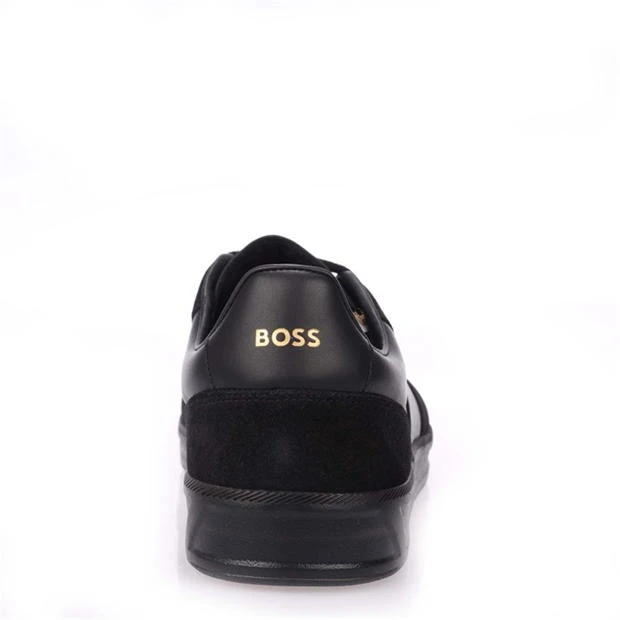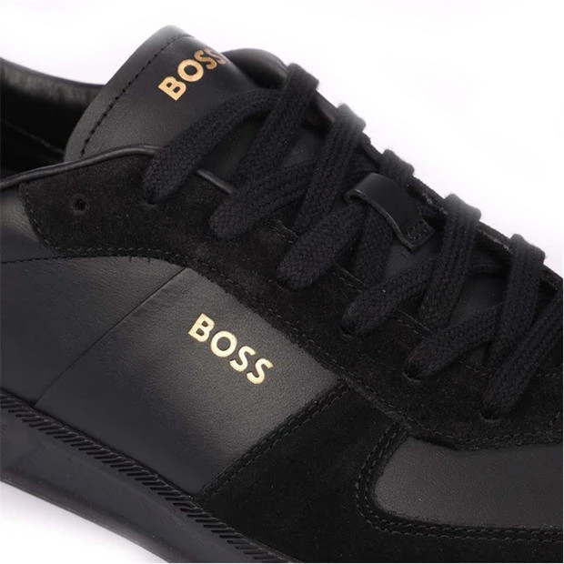 Mens BOSS Foil Print Branding Leather-Suede Trainers in black.
