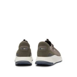 Crafted in a combination of materials including leather trims these running-style BOSS Menswear trainers strike a distinctive profile. Lightweight ridged outsole. Knitted uppers for enhanced comfort and fit. This product contains at least 60% better raw materials. This product is partly created with recycled polyester. We at HUGO BOSS prefer recycled polyester from pre- and post-consumer textile waste and do our best to phase out polyester from PET bottles.