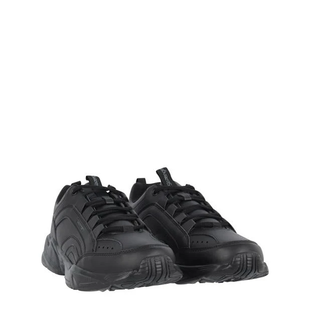 The Slazenger Kuba Low Top Trainers mixes fashion with that retro feel. Synthetic leather upper makes this trainer easy to clean and maintain. Pull on tab to the heel and tongue for easy on and off. Sat on a platform outsole to complete the look.